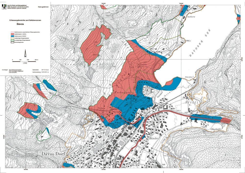 Source: Erfassungsbereiche und Gefahrenzonen Davos, Amt für Wald und Naturgefahren Kanton Graubünden, 2012.